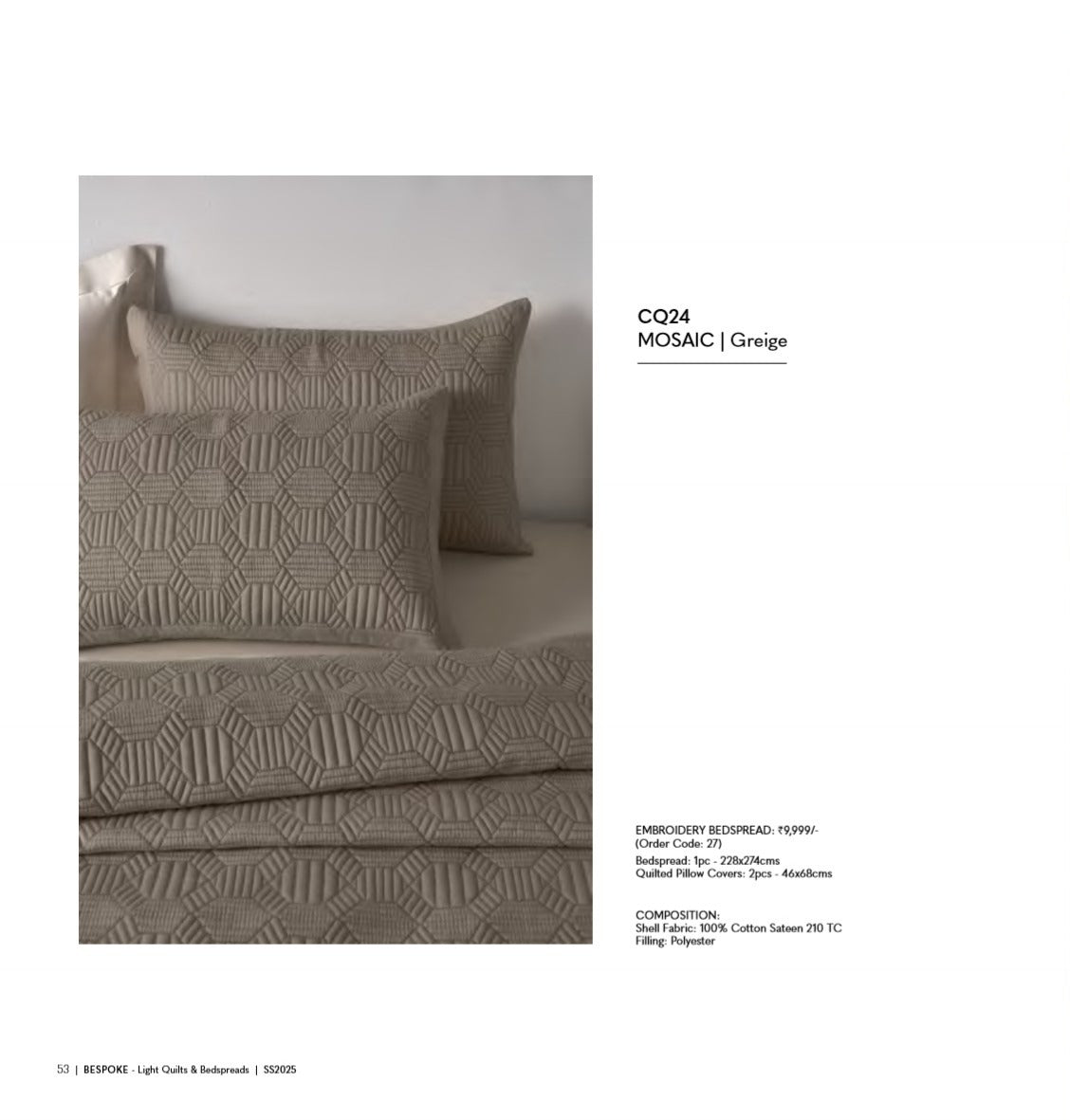 The Bespoke bedding collection offeres a refined selection of light quilts and comforters designed for versatile styling and year-round comfort. The collection features simple patterns to suite diverse tastes, bringing modern elegance to any bedroom.